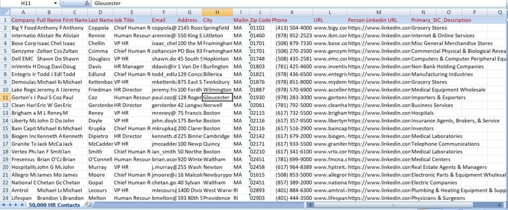 - 50,000 senior human resource executive contacts, including e-mails at 50,000 companies.